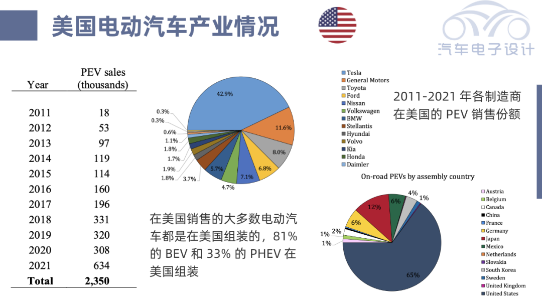 这一波美国新能源汽车的鼓励计划,是有着完善的规划的。从整车组装,电池生产和电池原材料的供应。事实上从2010-2021年,美国70%的电动汽车都是美国生产的,大量的电池都是在美国生产,这一波政策的支持是从长远考虑的。在美国销售的大多数电动汽车都是在美国本土组装的,81%的BEV和33%的PHEV。