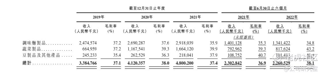 2019年到2021年,卫龙蔬菜制品的收入分别为6.6亿、11.7亿、16.6亿,2020年和2021年增速分别为75.6%、42.5%。2022年上半年,蔬菜制品收入8.2亿,增速降至3.1%。