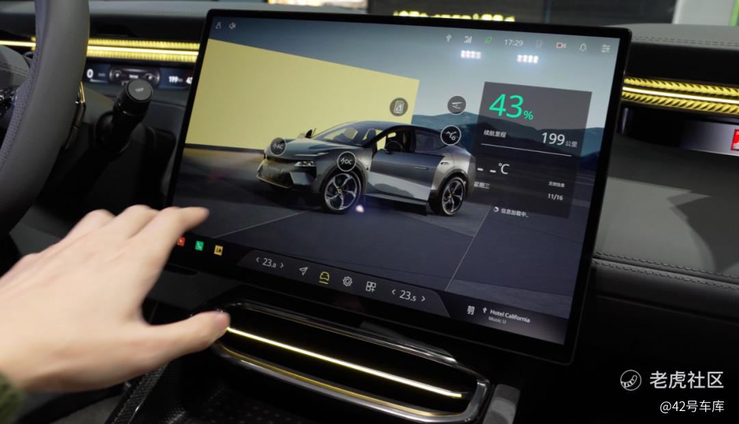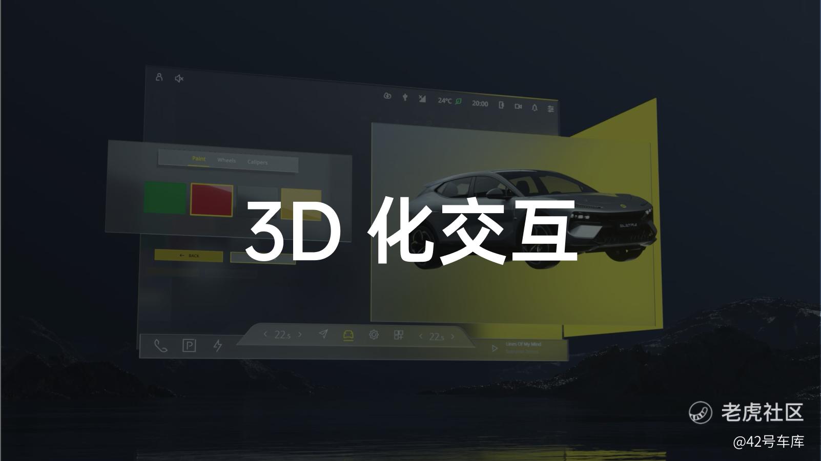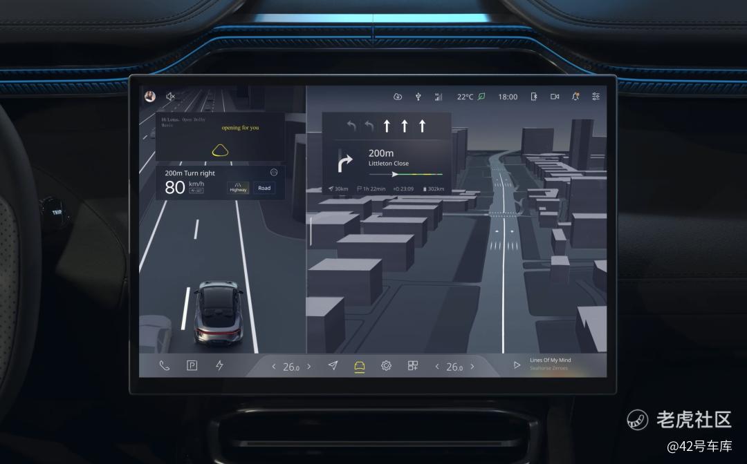 路特斯的车机系统命名为 Lotus Hyper OS,基于两颗 8155 SOC 的硬件和安卓底层架构,使用虚幻 4 打造高质量的 3D 交互界面,并且整个系统带有非常高度的定制化和智能化。