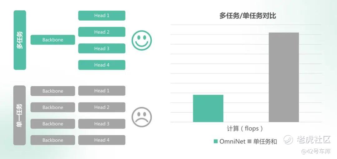 轻舟智航感知负责人张雨也解释了 OminiNet 和小鹏 XNet 的最大区别,虽然二者都是是二者都是一模型、多任务的模型。但是在他看来,还是有以下几点区别:
