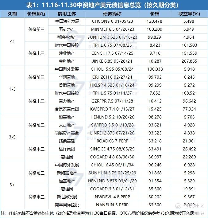 久期财经讯,12月1日,本网站对中资地产美元债近半个月(11月16日至11月30日)的二级市场走势进行了分析。