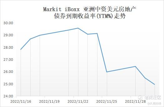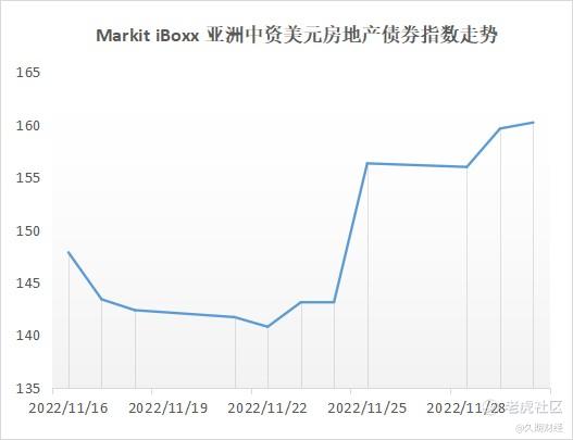 根据数据显示,11月16日至11月30日期间,iBoxx亚洲中资美元房地产债券指数上涨12.36,最新报160.23,到期收益率下跌2.87%,最新报24.95%。