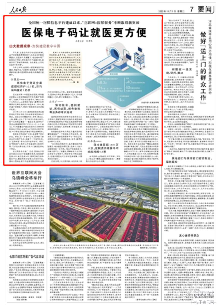 近日,**发表题为《全国统一医保信息平台建成以来,“互联网+医保服务”不断取得新突破:医保电子码让就医更方便》的文章,分析了目前医保电子码的三大特点:全覆盖,医保电子凭证全渠道授权用户12.3亿,日均展码量近1亿次;应用广,预约挂号、签到就诊、医保结算、报告查询等业务都可以完成;效率高,日均结算超1800万人次,住院费用结算平均响应时间0.8秒。