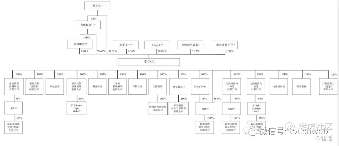 IPO前,蔡建勇直接持股为31.62%,通过力勤投资控制38.47%股权,通过力勤投资旗下全资公司宁波励展控制0.08%股权,谢雯女士持股为2.34%,Feng Yi持股为20%。