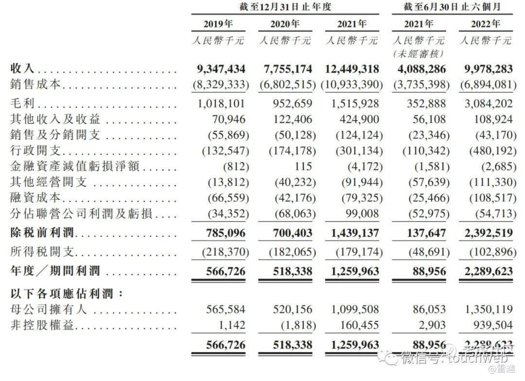 招股书显示,力勤资源2019年、2020年、2021年营收分别为93.47亿元、77.55亿元、124.49亿元;毛利分别为10.18亿元、9.53亿元、15.16亿元;期内利润分别为5.67亿元、5.18亿元、12.6亿元。