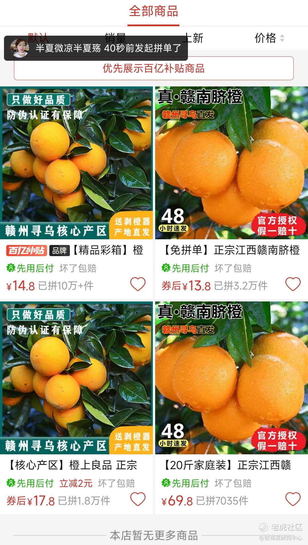 最近,潘哥想从拼多多买些橙子,在一家售卖赣南脐橙的店铺浏览时,意外地发现,这家店铺的商品,实在有些过于简洁。