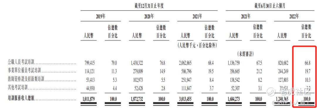 公司培训考试收入占比从大到小依次为公职人员、事业单位、教资、及其他。