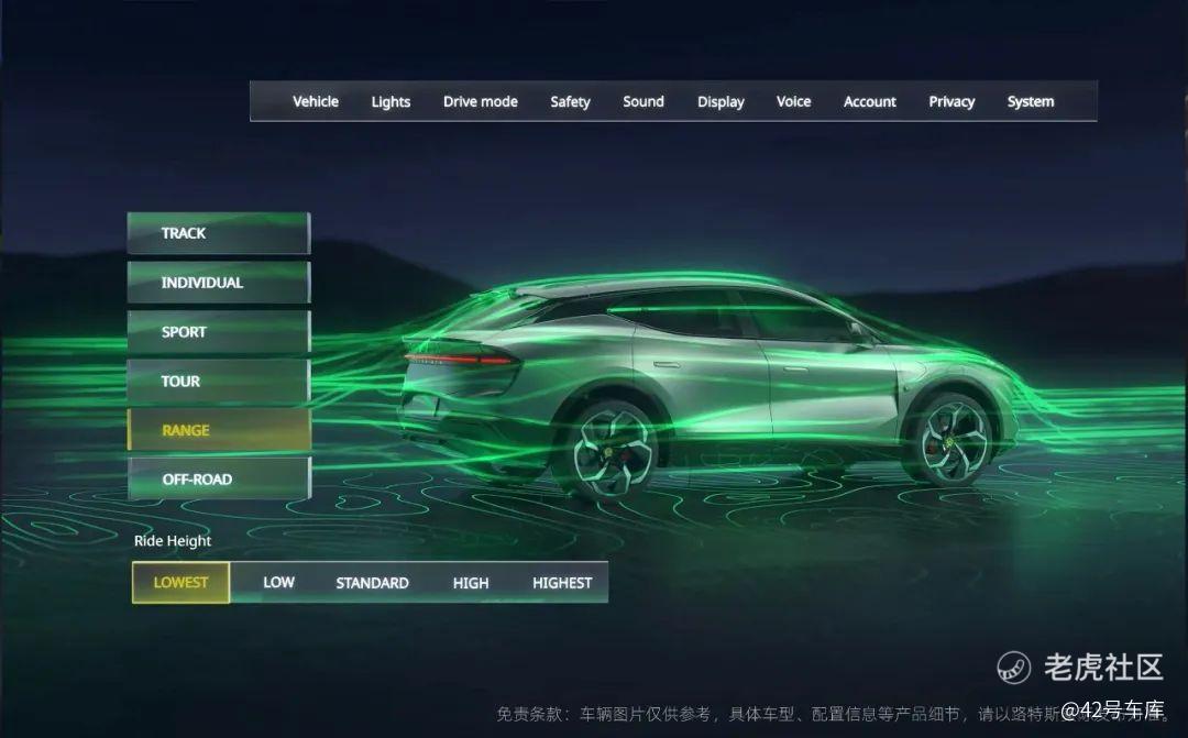 无论是开关门,调整车身颜色,尾翼调节,甚至调节了悬架高度,车辆模型也都会对应同步显示。这样你就在屏幕中获得了一台与车本身近乎同步的路特斯 Eletre。