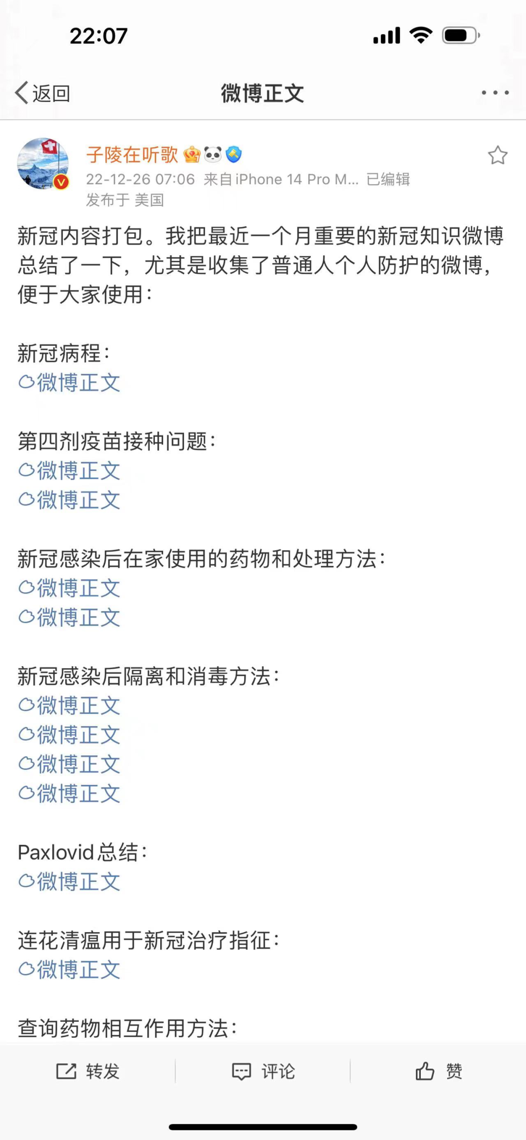 “最后我想说的一点,就是绝大多数新冠感染者不需要使用Paxlovid,Paxlovid仅适用于可能发生重症的患者,发病5天内使用才有效。绝大部分SARS-CoV-2感染进展迅速,并且基本都会痊愈,因此请不要去哄抢,更不需要去通过非法渠道购买未授权仿制药,同时,在这个危机中发国难财是不道德的。但另一方面,请不要被狭隘的nationalism蒙蔽了双眼。疫情以来,无论是国内还是很多西方国家掀起的反智反科学的nationalism运动的结局就是让疫情更严重,让很多人发生无必要的住院和死亡。这点其实是疫情给我们的深刻教训。 ”