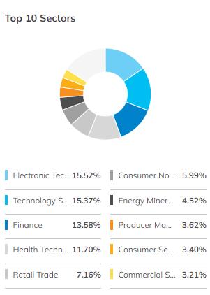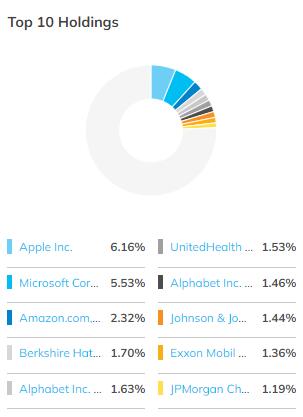 这些公司中的大多数也包含在标准普尔 500 指数中。但是,权重可能不同,这意味着在比较这两个基金时,分配给这些公司的资金数额会有所不同。尽管标准普尔 500 指数提供了更多的多元化,但鉴于经济状况,整体市场往往会朝着相同的方向发展。
