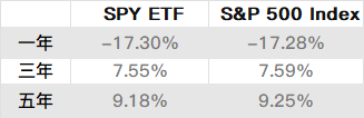 SPDR SPY 与标准普尔 500 指数的年化表现