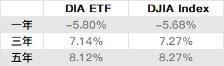 DIA ETF 与 DJIA 指数的年化表现