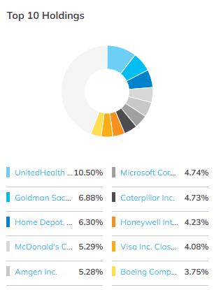 DIA ETF 前 10 大持股数据来源:ETF.com