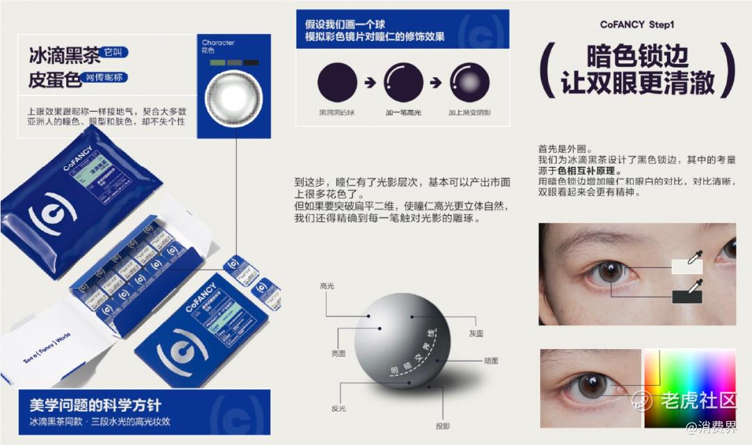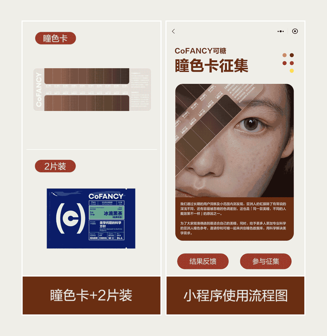 这套「瞳色卡」的建立是从用户的使用需求出发,帮助用户更好地了解自己的瞳色和需求,从而更好的选择到适配的产品。