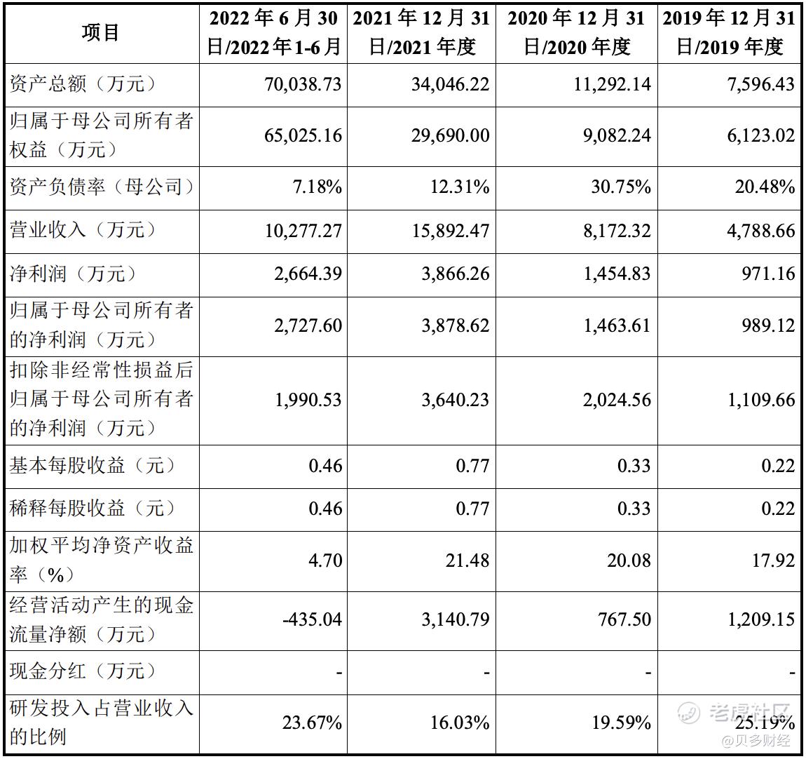 2019年、2020年、2021年和2022年上半年,赛卓电子的营业收入分别为4788.66万元、8172.32万元、1.59亿元和1.03亿元,净利润分别为971.16万元、1454.83万元、3866.26万元和2664.39万元,扣非后净利润分别为1109.66万元、2024.56万元、3640.23万元和1990.53万元。