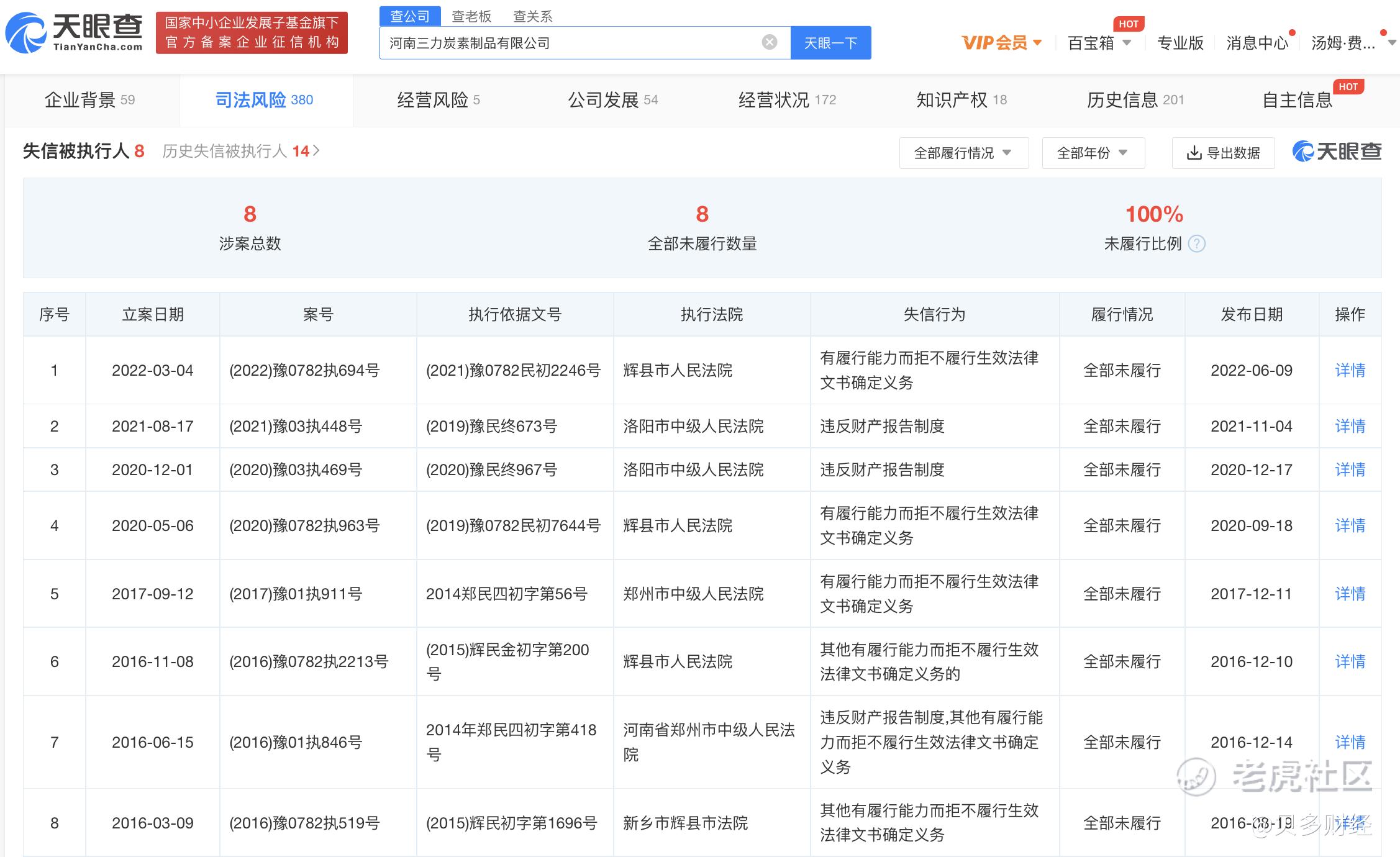 据介绍,升能集团的经营主体包括河南三力炭素制品有限公司(下称“三力炭素”)、河南科峰炭材料有限公司等。而天眼查信息显示,三力炭素已经被法院多次列为失信被执行人,且已经被多次限制高消费。