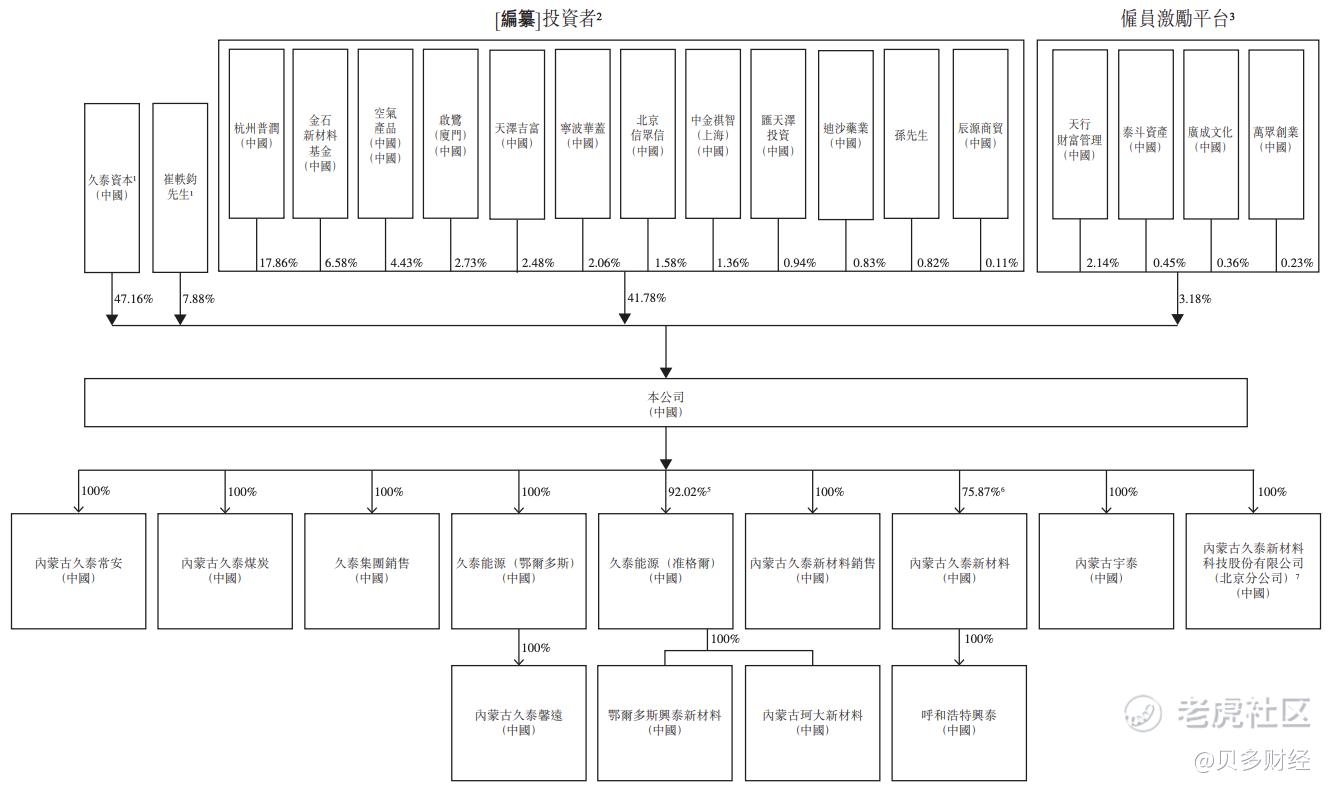 本次上市前,崔连国、崔轶钧通过久泰资本持股47.16%,崔轶钧直接持股7.88%。据招股书介绍,根据一致行动确认及承诺,崔连国、崔轶钧、久泰资本,根据上市规则将被视为久泰新材料的控股股东。