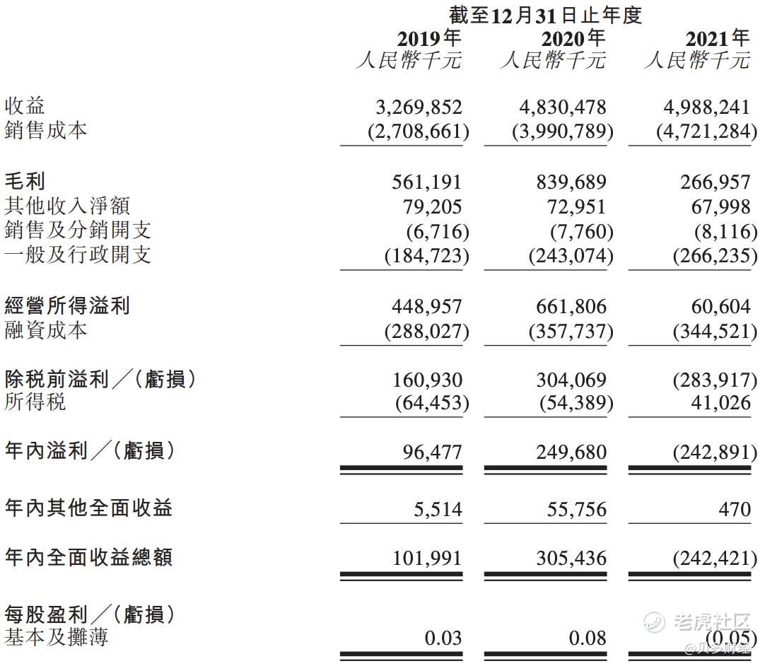 2019年、2020年和2021年,久泰新材料的营收分别约为32.70亿元、48.30亿元和49.88亿元,毛利分别约为5.61亿元、8.40亿元和2.67亿元,净利润分别为9647.7万元、2.50亿元和-2.43亿元,于2021年出现亏损。