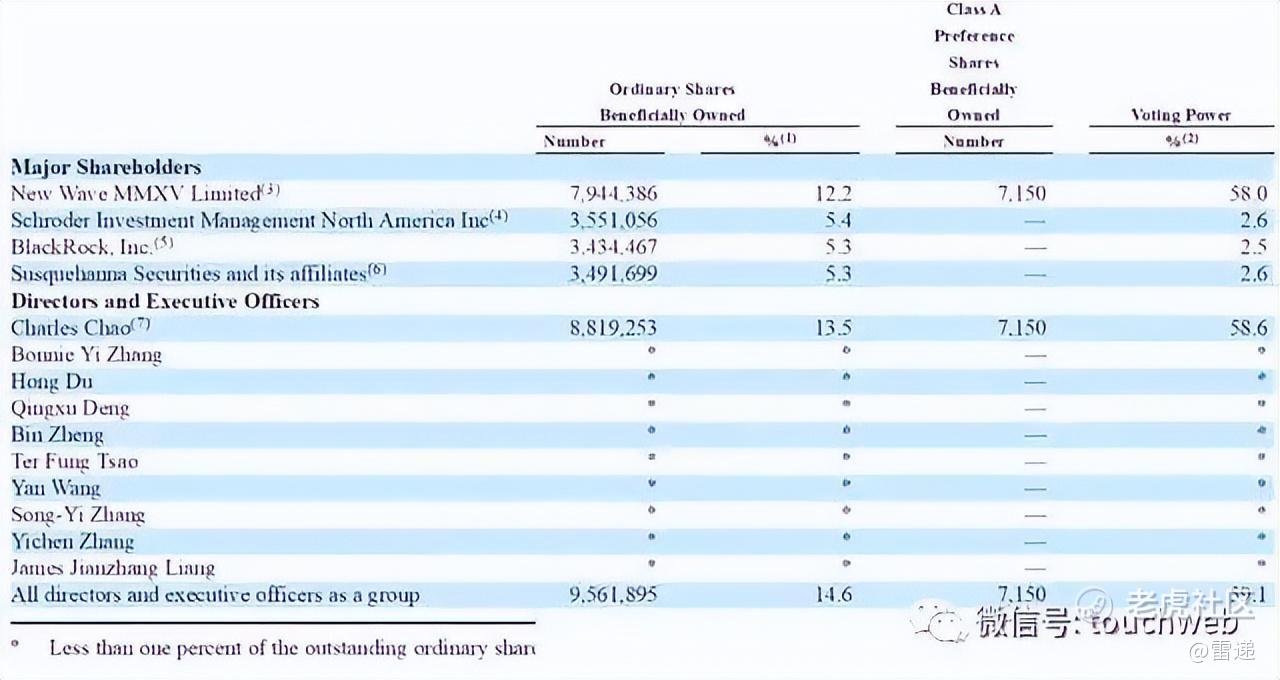 因此,新浪董事会向曹国伟的New Wave MMXV有限公司发行A类优先股,使得New Wave所持有的每1股普通股等同于10股投票权。这使得曹国伟即便减持也能很好的控制公司。