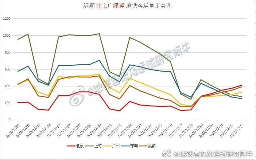 有一个指标是每个城市的地铁客流量,每个城市地铁微博每天都会公布,有网友统计了下:
