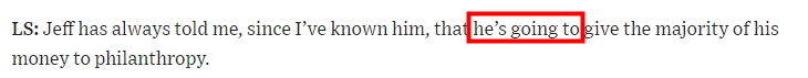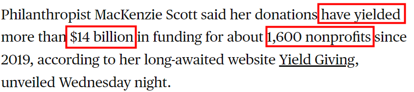 就是,那一刻,贝佐斯记不记得,他曾经给前妻立了个“每天下班回家赶着刷碗的“宠妻””人设!现在,还多了一个“大慈善家”称号。不过,就在他不断透露未来将捐出大部分财产的时候,他的前妻麦肯齐至今已经捐出140亿美元,资助了超过1600个非盈利机构。