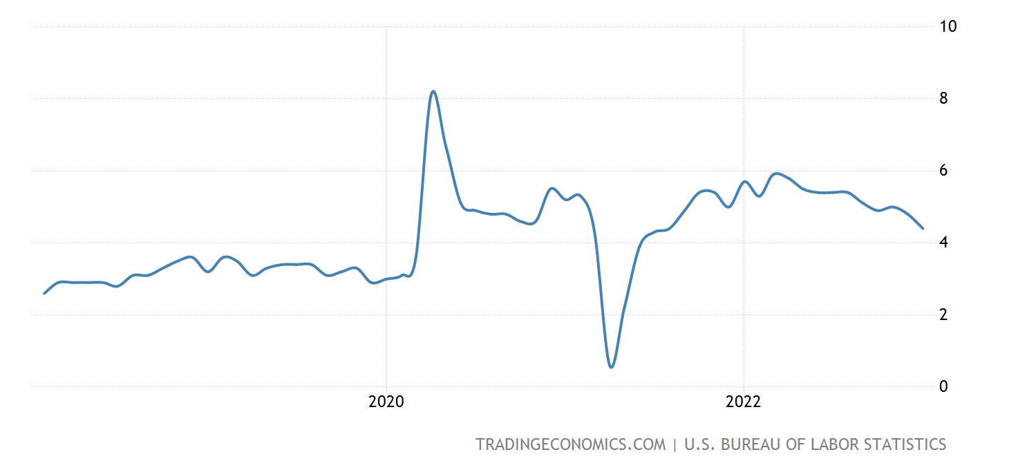 1月的平均时薪同比增长4.4%,高于预期4.3%,环比上涨0.3%,与12月的增速持平。虽然同比增速是2021年8月以来最低,但仍然比疫情之前高了一级。