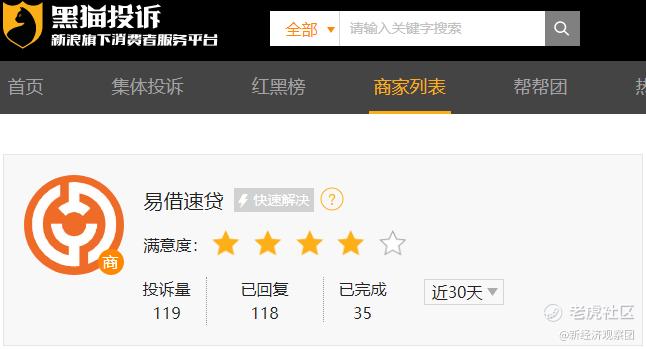 开甲财经注意到,易借速贷在黑猫平台共有1187件投诉,近30日投诉量119件。有网友反映,该平台逾期后,第三方涉嫌暴力催收,另外平台会员费为变相砍头息。