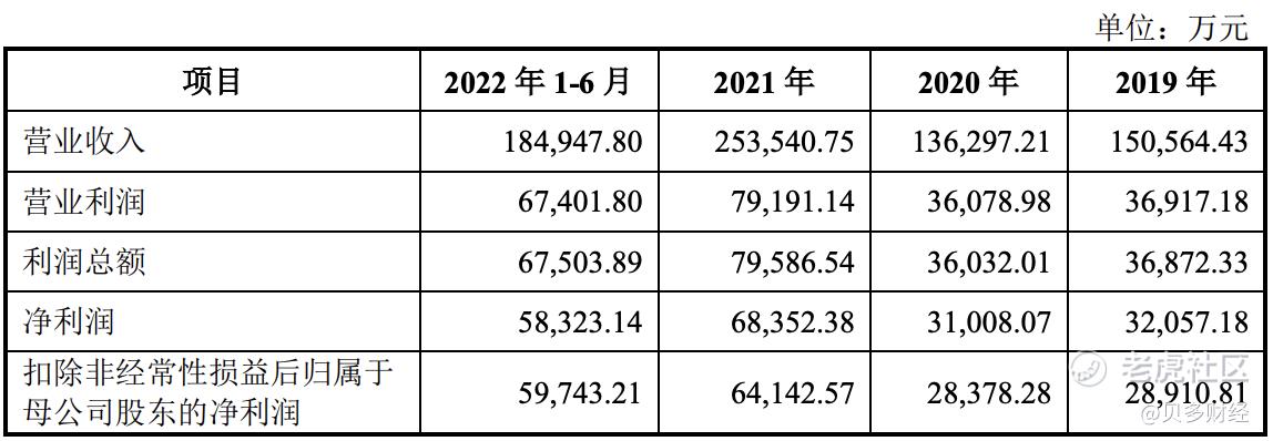 2019年、2020年、2021年和2022年上半年,江瀚新材的营收分别为15.06亿元、13.63亿元、25.35亿元和18.49亿元,净利润分别为3.21亿元、3.10亿元、6.84亿元和5.83亿元,扣非后净利润分别为2.89亿元、2.84亿元、6.41亿元和5.97亿元。