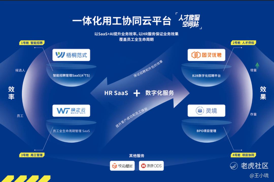 智能招聘:通过具有规模化招聘落地能力的服务型HR SaaS+AI产品「梧桐范式」,上游对接自建的B2B数字化招聘平台「图灵优聘」,整合全国5000多家人力资源渠道商的供人能力,基于人工智能算法的人才画像、视频简历、智能匹配和AR面试等工具,助力企业构建规模化的招聘能力。