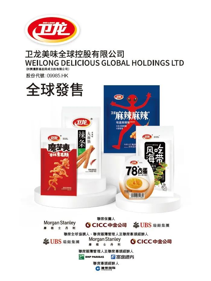 2022年12月15日,卫龙美味全球控股有限公司 Weilong Delicious Global Holdings Ltd (下称“卫龙”)(09985.HK),成功在香港联合交易所主板挂牌上市。