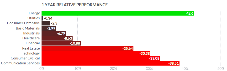 今年由于新冠肺炎、俄乌冲突等导致能源价格飙升,能源股也随之表现不俗。龙头股$埃克森美孚(XOM)$ 、$雪佛龙(CVX)$ 今年分别录得超80%和51%的涨幅,油气精炼方面$马拉松原油(MPC)$ 上涨超85%,$瓦莱罗能源(VLO)$ 上涨超77%,