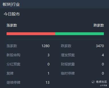 今天两市成交5746亿,量能明显萎缩,上涨与下跌比例为1280比3470,整体上呈现普跌状态。
