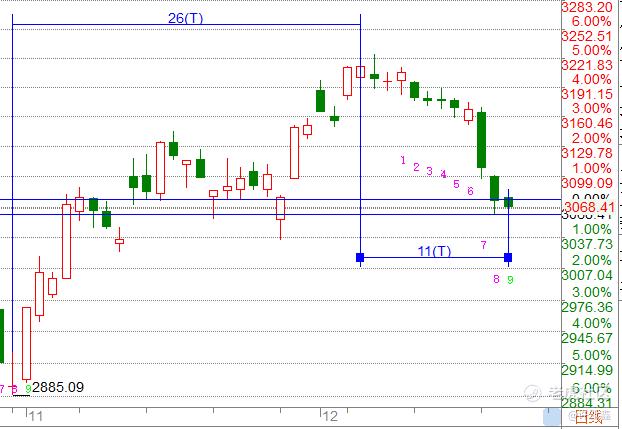 从空间维度来看,2885低点写死日线级别的底部结构之后,涨到12月06日的高点3224,这一段行情(2885-3224)的38.2%位于3090,50%位于3050,61.8%则位于3010,也就意味着,这一波的主跌空间已经接近尾声。