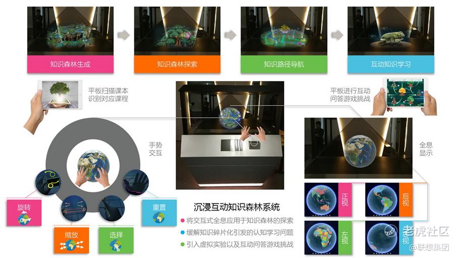 联想集团作为全球最大的个人计算设备提供商、领先的智能制造实体企业,已通过研发应用、平台和交互设备等多层级技术,打造了大量融合物理世界与虚拟世界边界的生态系统和解决方案。联想HoloTable沉浸互动知识森林系统,正是联想集团虚实融合技术在教育领域落地的成功案例之一。