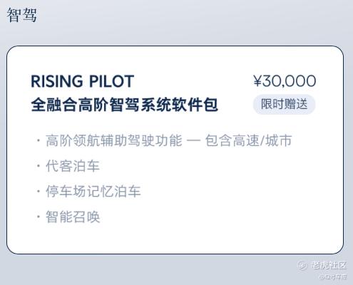 而且年底前购车的用户还能够免费赠送价值 3 万元的 RISING PILOT 全融合高阶智驾系统软件包,包含高速/城市的高阶领航辅助、代客泊车、记忆泊车以及智能召唤。对于看中辅助驾驶的用户们来说,现阶段购买飞凡 R7 还是非常划算的。
