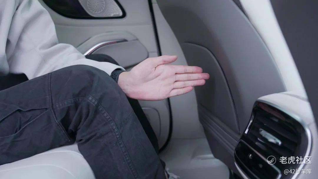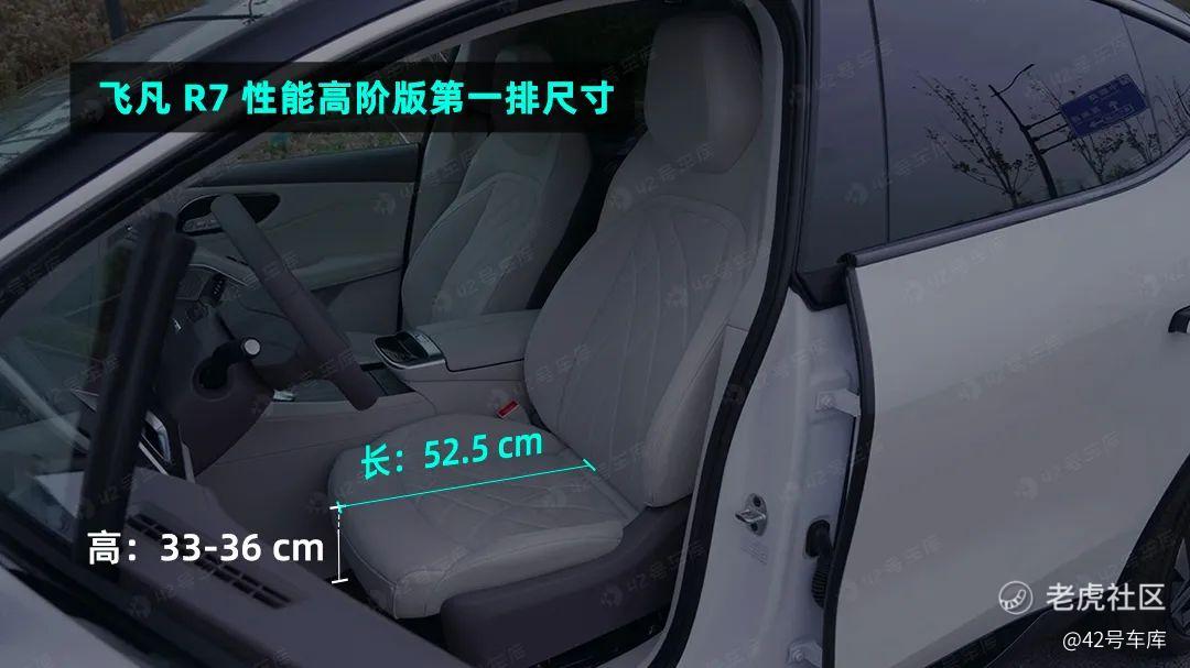 上部飞凡 R7 用了一块全景天幕来换取更多的头部空间,下部则由于躺式电芯的设计尽可能压低了地台的高度,外加借助于长轴距能在保证腿部空间的同时把座椅向前移,因此个子再高大些的用户也不会觉得压抑。
