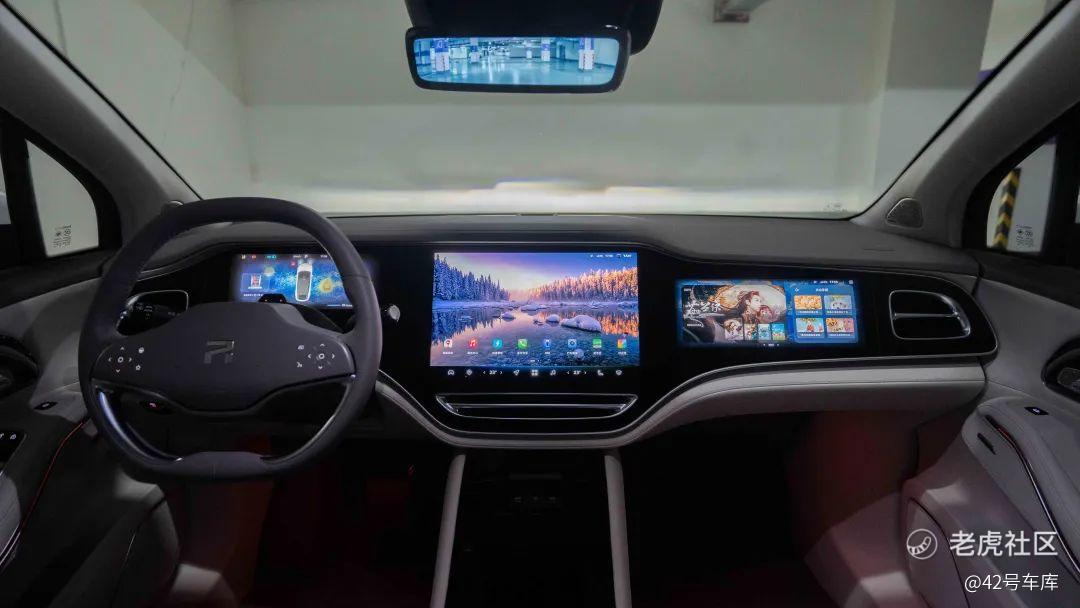当越来越多车型都具备这些屏幕之后,使用体验和功能性就成了新的发展方向。这时飞凡汽车就在 R7 的座舱中贴上了 RISING MAX 3+1 巨幕的标签。所以我第一次坐进飞凡 R7 的前排,立刻就被这 43 英寸宽幅真彩三联屏所吸引住了。