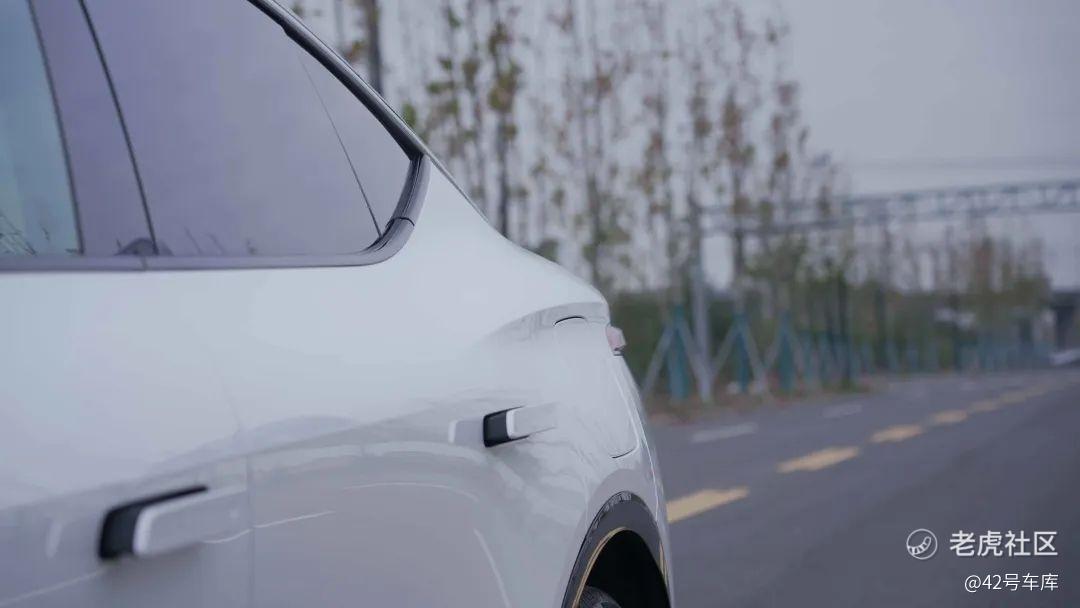 我们这次拿到的飞凡 R7 性能高阶版选了拼色云舒白的车漆以及 21 寸星宇轮毂,也是我个人比较喜欢的外观搭配,能够将飞凡 R7 的车身线条都很有张力地展现出来。