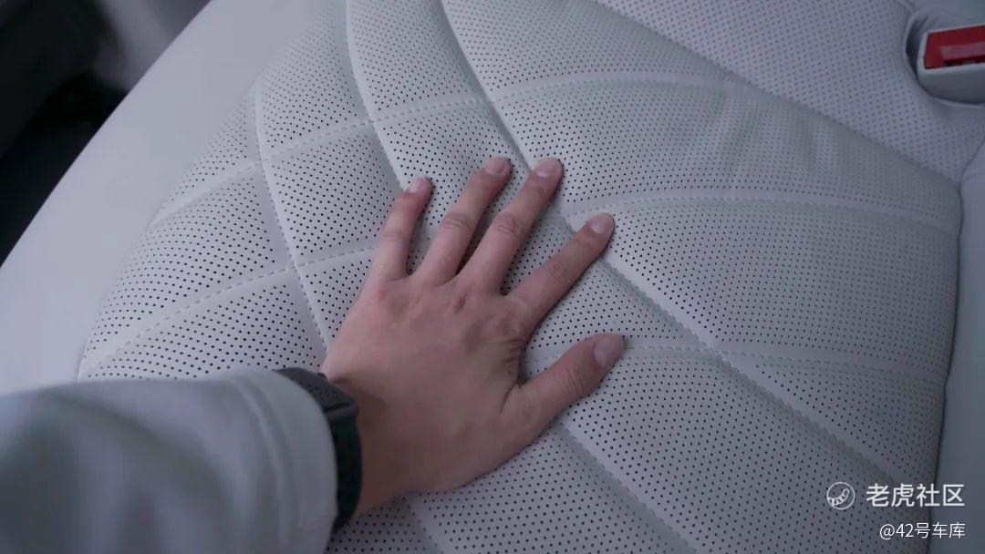飞凡 R7 的前排座椅用了一体式的桶椅设计,外观看起来比较运动也比较厚实。实际乘坐感受,飞凡 R7 的座垫填充物偏硬,属于支撑较好的座椅类型。在连续乘坐 4—5 个小时之后也未出现腰酸背痛的现象,此外主副驾驶还支持座椅按摩功能,按摩种类达到 7 种之多。选装了 1 万的豪华尊享包之后,还将坐垫的材料换成了 Nappa 材质,触感很细腻。