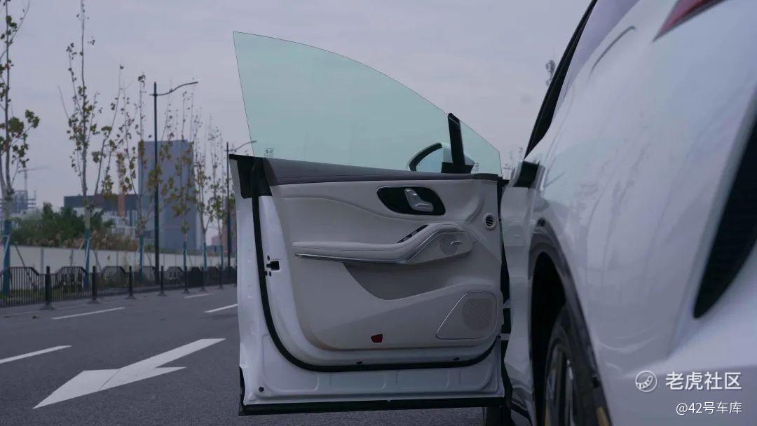 此外车门方面,飞凡 R7 也是同级别中为数不多提供电动吸合门的车型。拉开门把手自动开门,上车踩刹车自动闭合,整个流程非常顺滑。不过现阶段无论是特斯拉 Model X 还是极氪 001 上,电动门一直饱受大家吐槽,时而开门撞到柱子,时而开关门意图不符,但是电动门所带来的便利性依旧是手动门无法替代的。