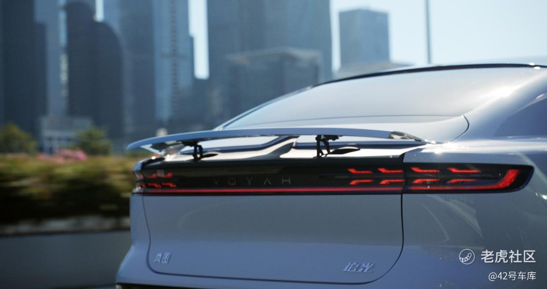贯穿式尾灯则有浓厚的家族化风格,左右灯组内箭矢样式的结构也比较犀利。电动开合的尾翼有点意思,这并不是单纯的装饰,岚图表示尾翼最大可提供 40 kg 的下压力,增加高速行驶时的稳定性。