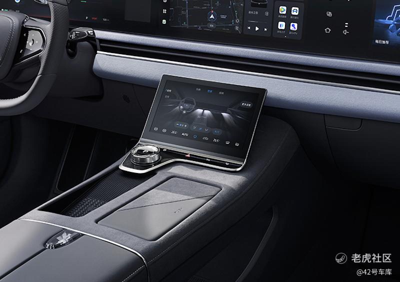 在追光上,实体按键也几乎全被消灭。岚图 FREE 和梦想家上的挡把变成了旋钮式操作,整体看上去更加简洁。在中控台下方,追光新增了一块控制中枢,可以操作空调等功能。