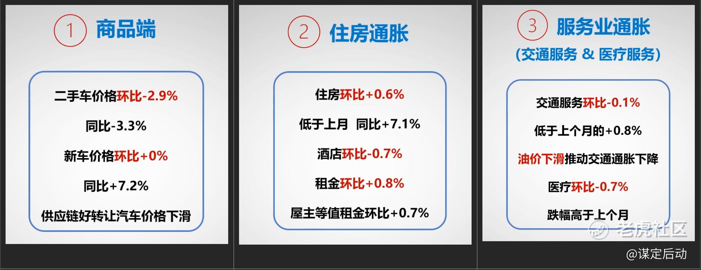 从细分领域看,二手车降幅很大,这将是一个持续的趋势;住房通胀的仍然在上涨中,但是涨势已经见顶,这个领域会在将来的CPI数据下降的主力因素;服务业的通胀也是在缓慢的下降趋势中。
