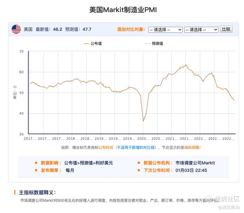 星期五下跌的一个原因是公布的制造业指数的下跌超乎预期,预测值是47.7,而实际值是46.2,远低于荣枯线50的水平,这让市场担忧经济衰退的幅度是否会很大。