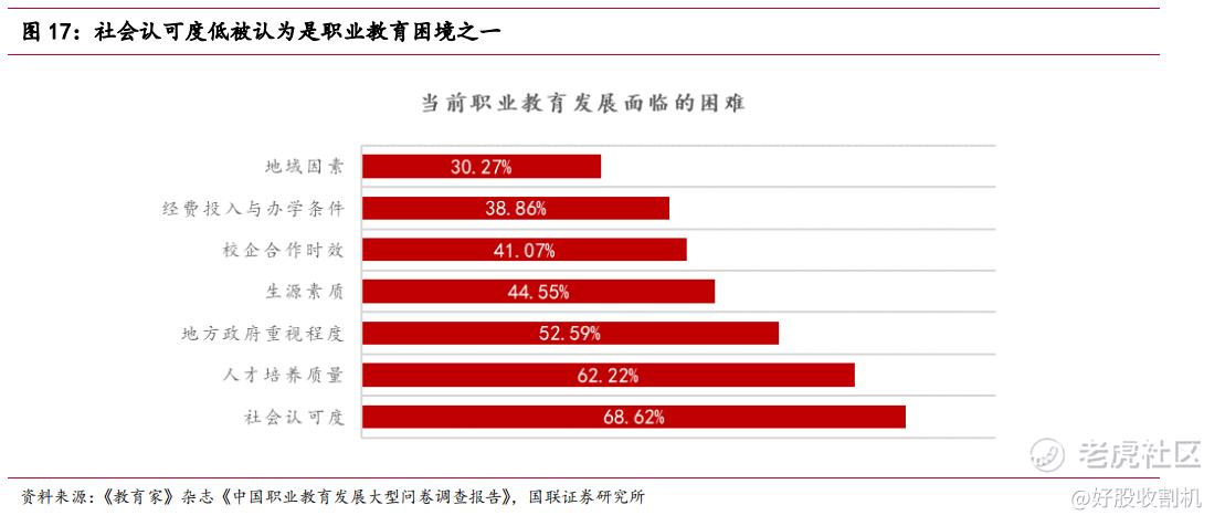11月17日,教育部等五部门印发了支持性的《职业学校办学条件达标工程实施方案》,提出多项涉及职业教育的重点任务,包括要求职业学校办学条件重点监测指标全部达标的学校数量比例,采取合并、集团化办学等形式优化职业学校布局,多渠道筹措办学经费,包括学费收入、民营资本、金融机构等。
