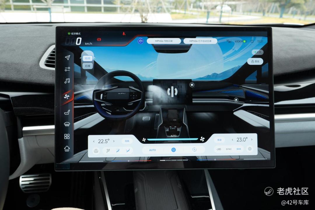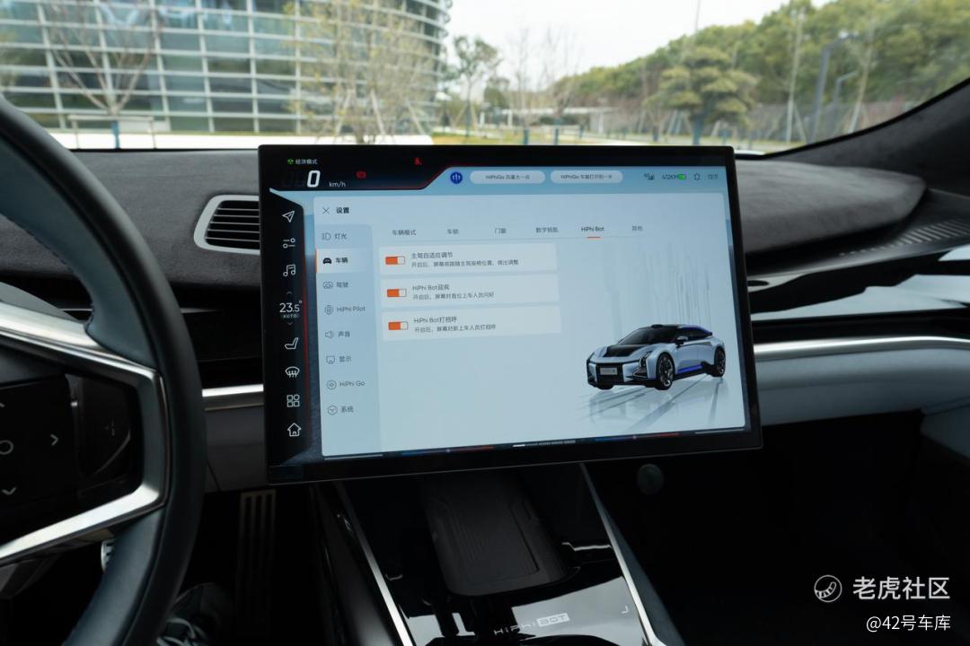 在车内最吸引我的地方是大屏的设计,高合直接把这一整个交互屏起了个名叫 HiPhi Bot,由一块 2K 分辨率的屏幕和可活动机械臂组成。