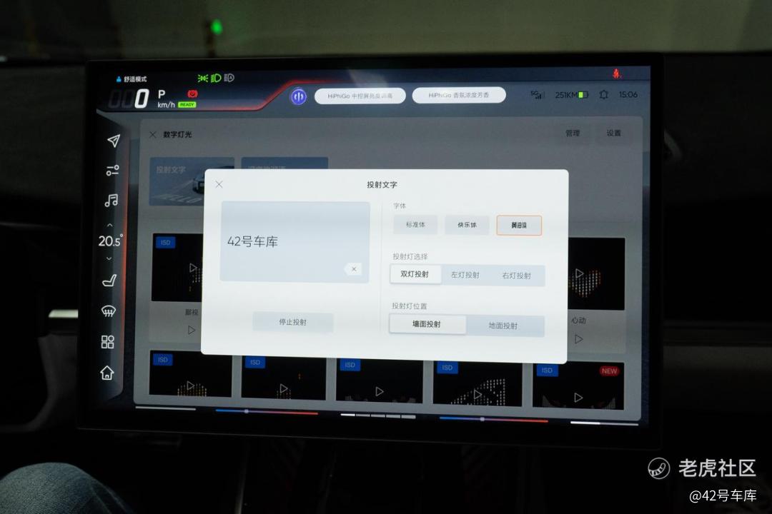 HiPhi Z 和 HiPhi X 一样,搭载了 PML 可编程大灯,以及车头车尾和车侧的 ISD 智能交互灯。相互配合下,能够实现很多的玩法。比如可以直接在正前方的墙上投射出自定义文字,也可以用车侧的 ISD 交互灯显示欢迎语。