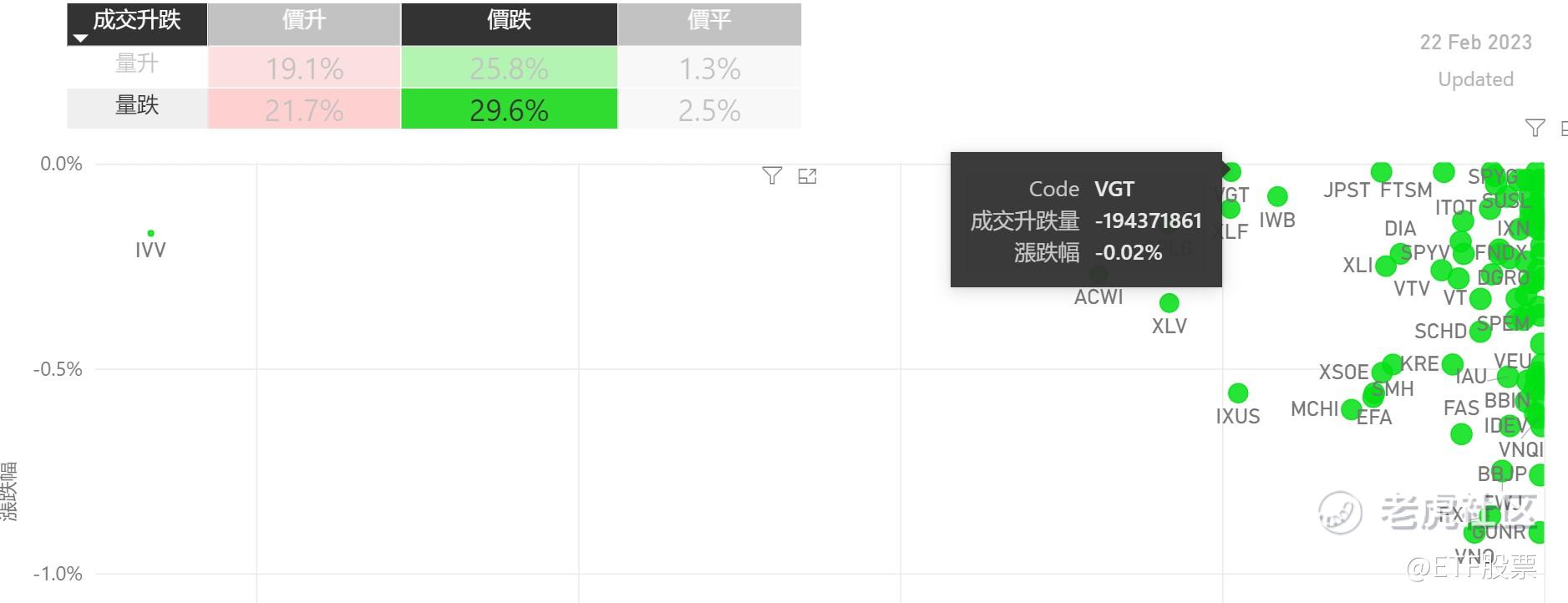 (下跌0.02%)、ONEQ(下跌0.02%)以及VGT(下跌0.02%)。