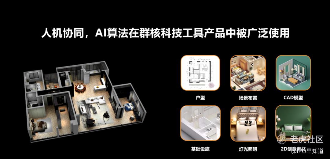 发布会上,陈航大量描绘了所在行业正在发生的变化和趋势。基于行业趋势走向,以及平台用户习惯,陈航宣布群核科技产品架构和工具能力的三大关键词:一、AI智能:AI将成为设计助手,通过人机共创,改变内容创作模式;二、移动:未来,在算力较弱的移动终端也能实现设计、协同体验;三、协同:实现用户、专业、分块协同,提升全链路整体效率。