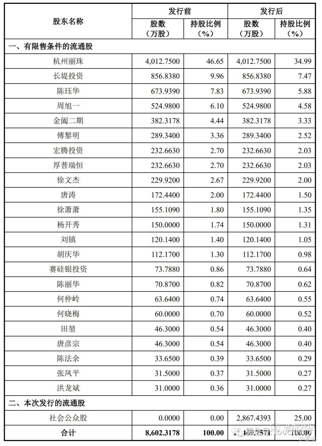 IPO前,长堤投资持股为9.96%,周旭一持股为6.1%,金阖二期持股为4.44%,傅黎明持股为3.36%,宏腾投资、厚普瑞恒分别持股为2.7%;